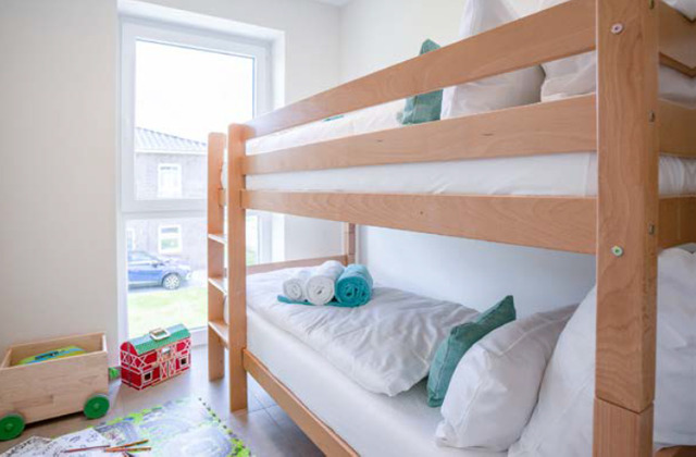Das Ferienhaus liegt in einer ruhigen Neubausiedlung, nur einen kurzen Spaziergang vom Badestrand entfernt. Restaurant, Einkaufsmöglichkeiten, die Nordsee-Lagune, die Spielscheune und weitere Freizeitangebote erreichen Sie bequem zu Fuß. Auch eine Bushaltestelle befindet sich ganz in der Nähe.