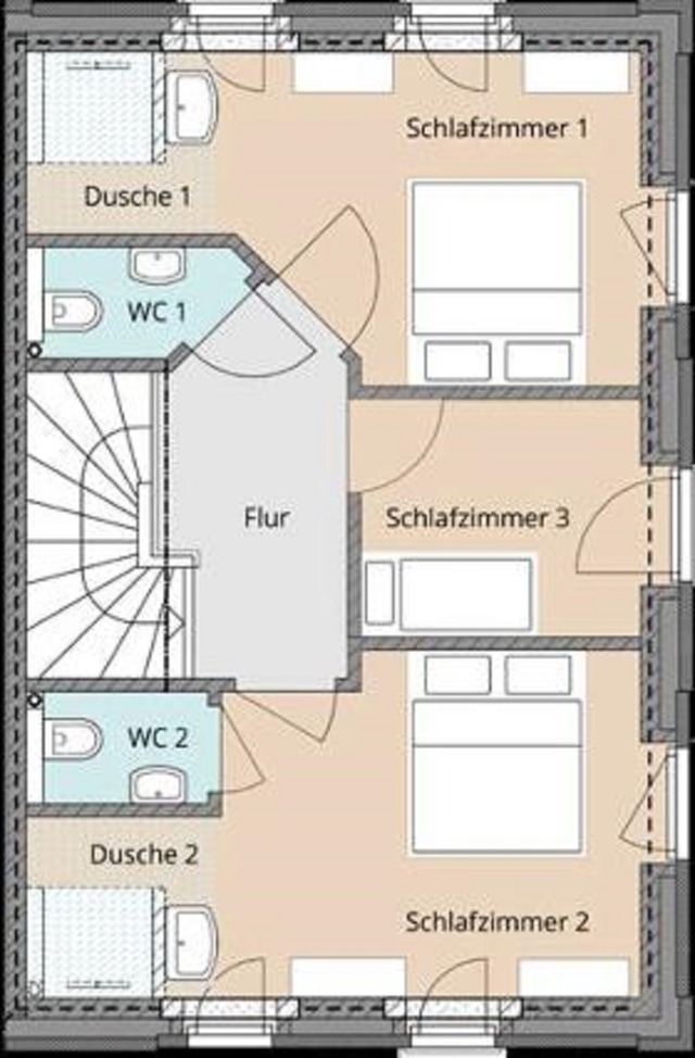 Im Obergeschoss finden Sie 3 komfortable Schlafzimmer: