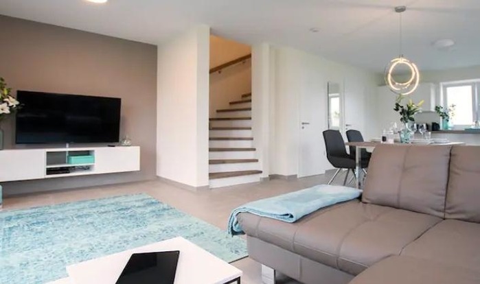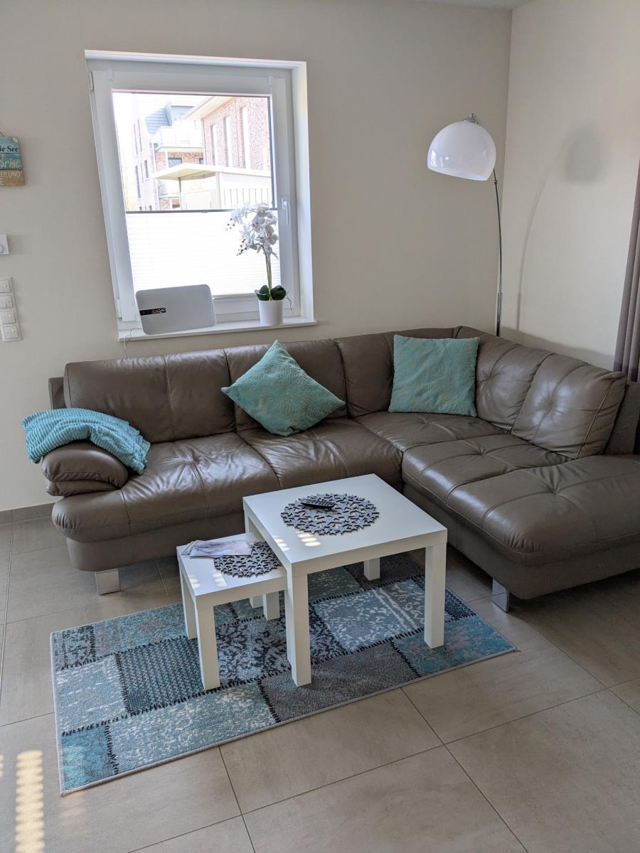 Schon beim Betreten spürt man die entspannte Atmosphäre: warme Farben, viel Licht und ein liebevoll gestalteter Wohnbereich, der sofort Urlaubsstimmung aufkommen lässt.