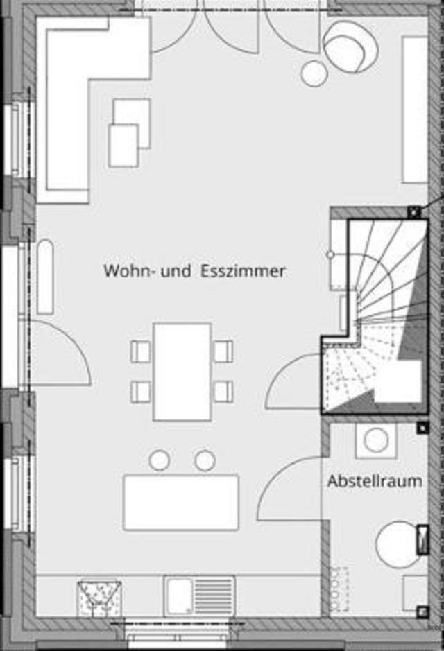 Das Erdgeschoss empfängt Sie mit einem hellen, offenen Wohn-Essbereich, der zu gemeinsamen Stunden einlädt- sei es beim Frühstück, beim Kochen oder beim entspannten Fernsehabend. Von hier aus gelangen Sie direkt auf die sonnige, überdachte Terrasse.