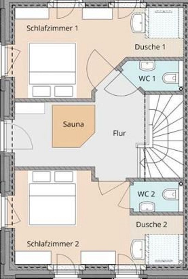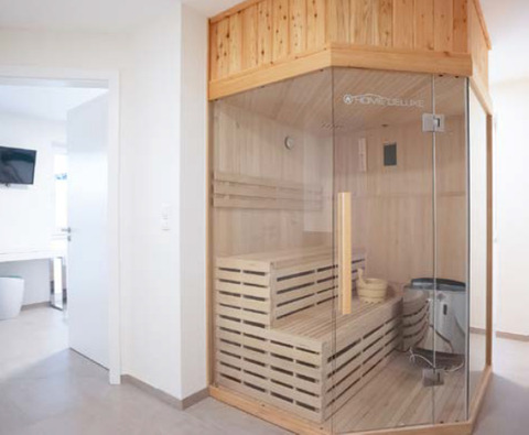 Ein besonderes Highlight stellt die Sauna im Obergeschoss dar – ideal um nach einem Strandtag in Ruhe zu entspannen.