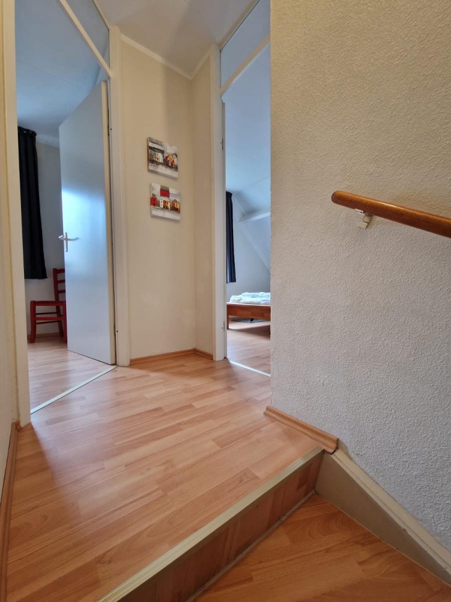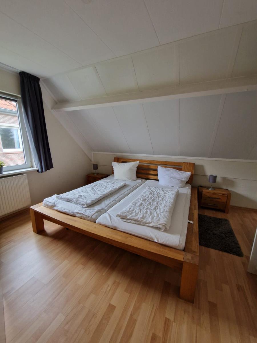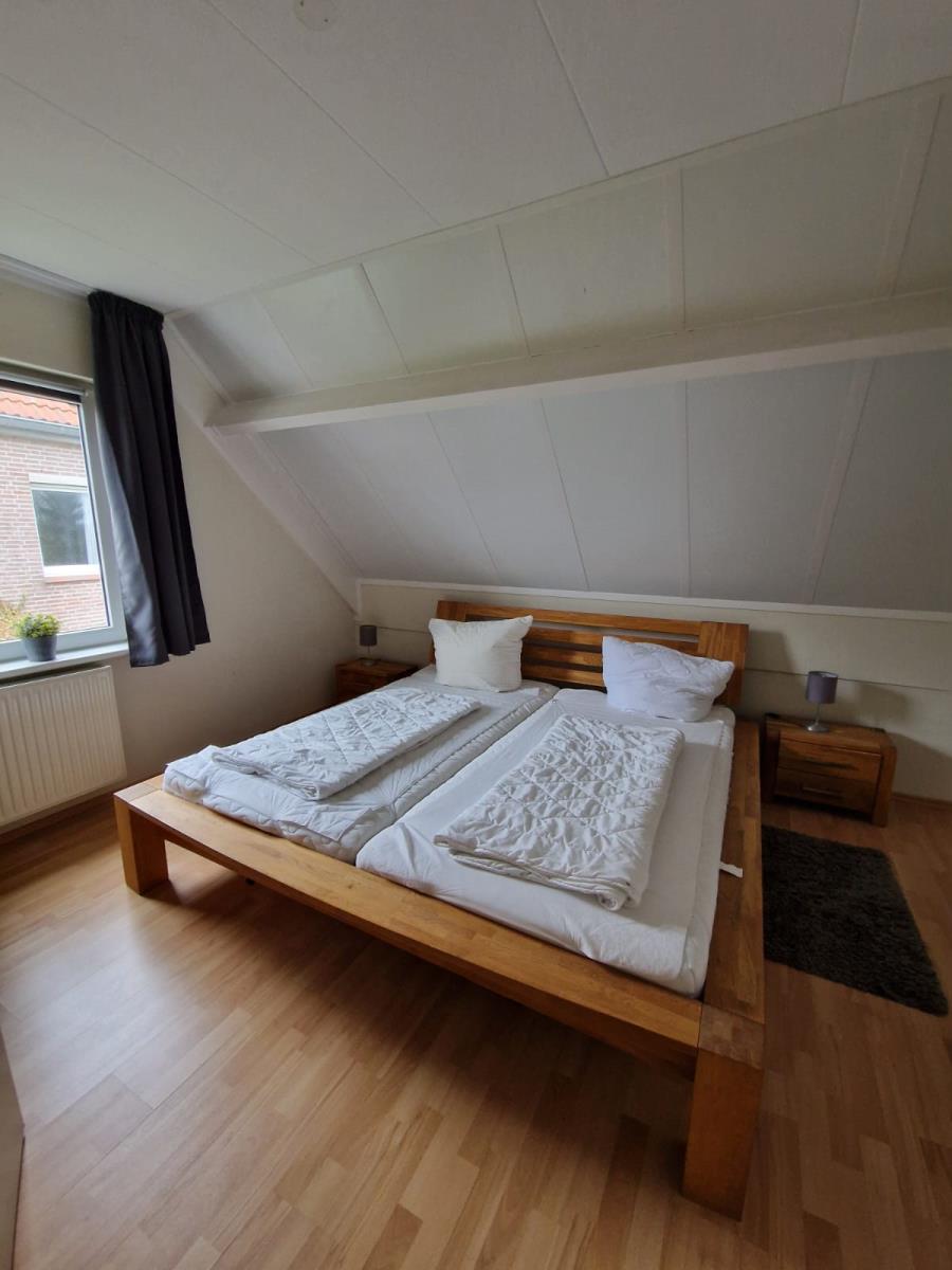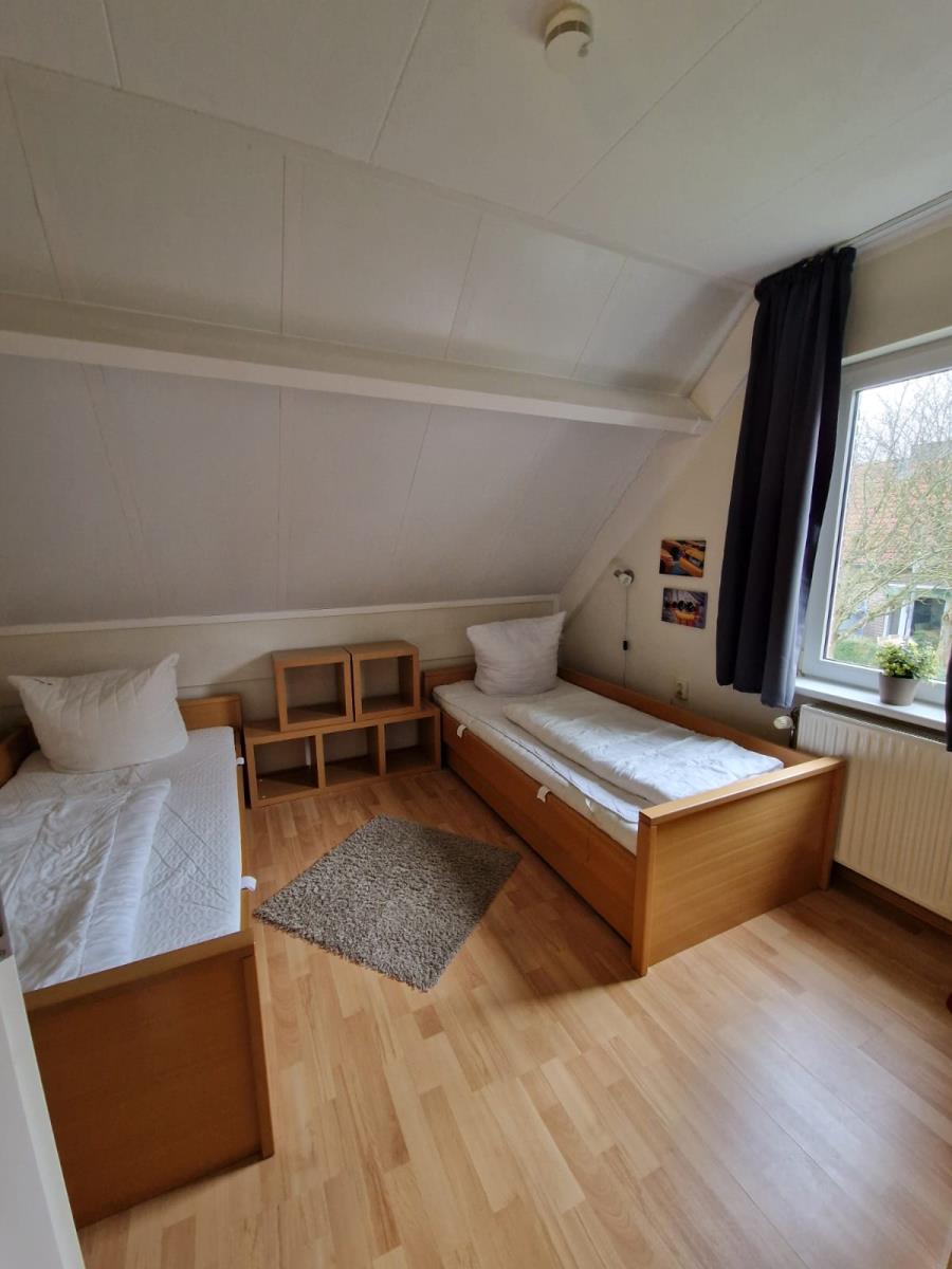 Das Haus verfügt über zwei gemütliche Schlafzimmer. Ein Schlafzimmer ist mit einem Doppelbett (180 × 200 cm) ausgestattet, das zweite bietet zwei Einzelbetten (je 90 × 200 cm). Ergänzend steht im Wohnbereich ein Schlafsofa zur Verfügung.