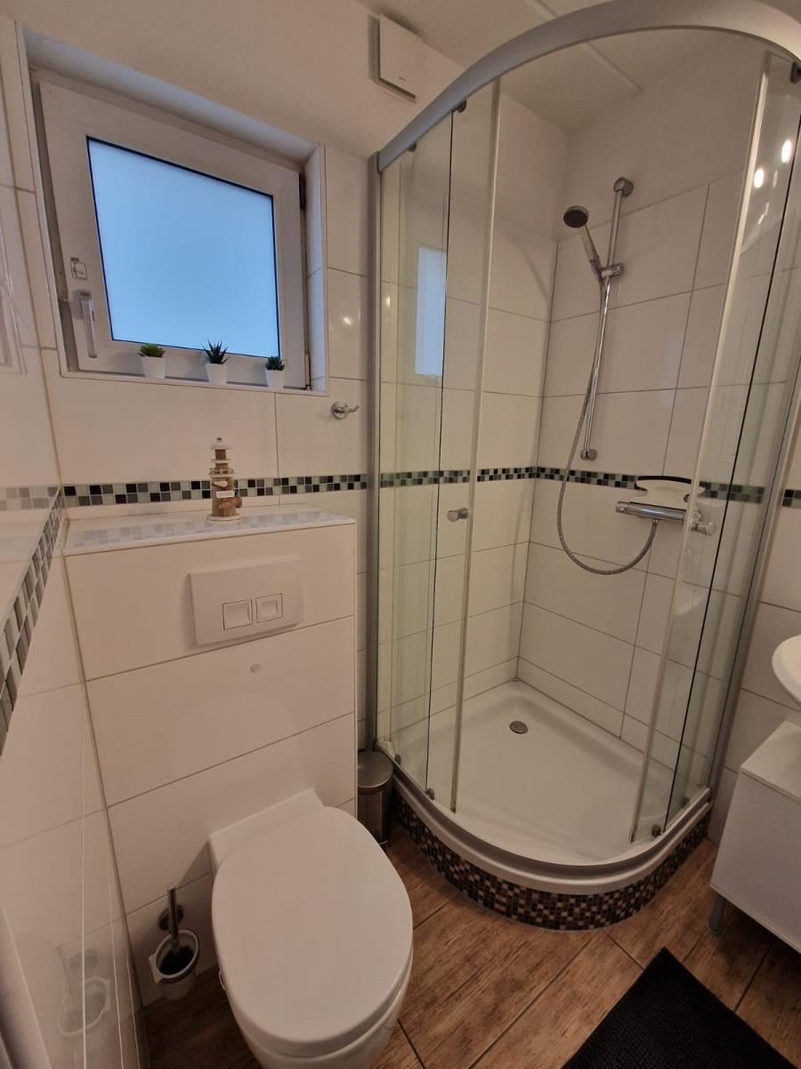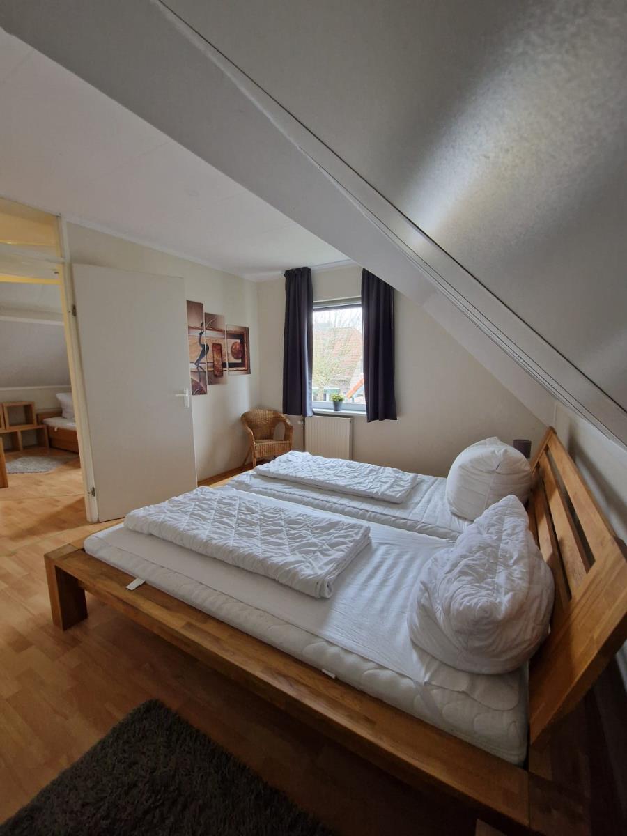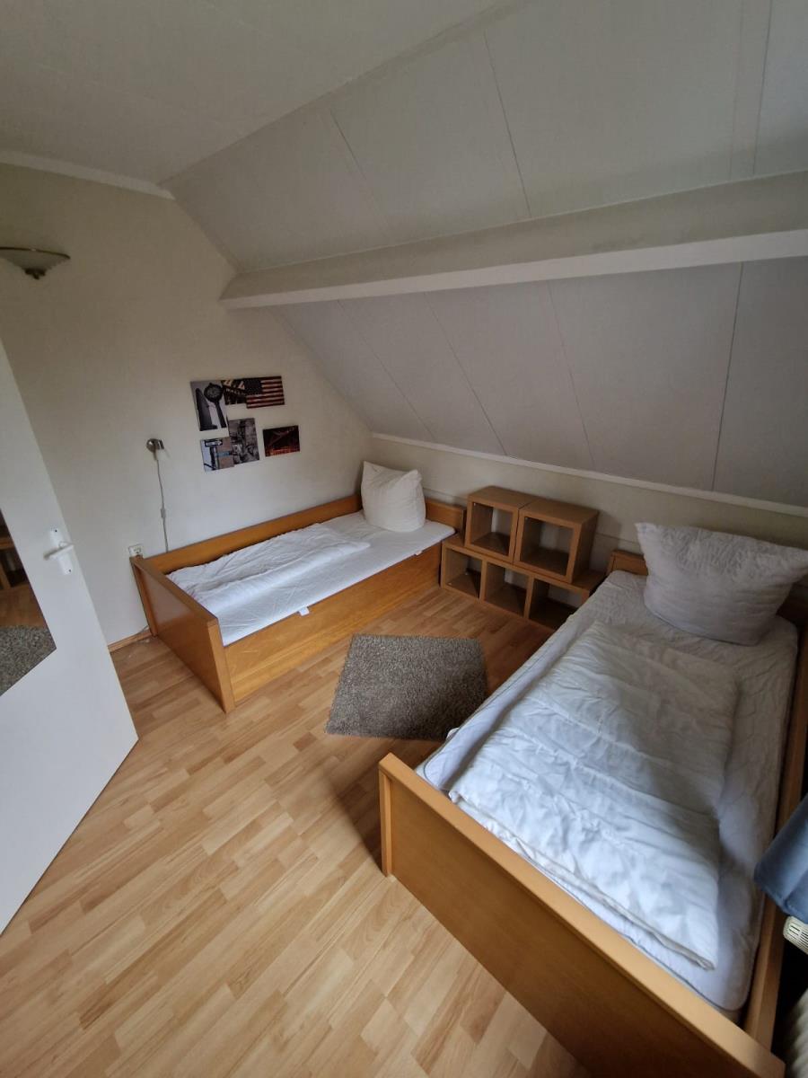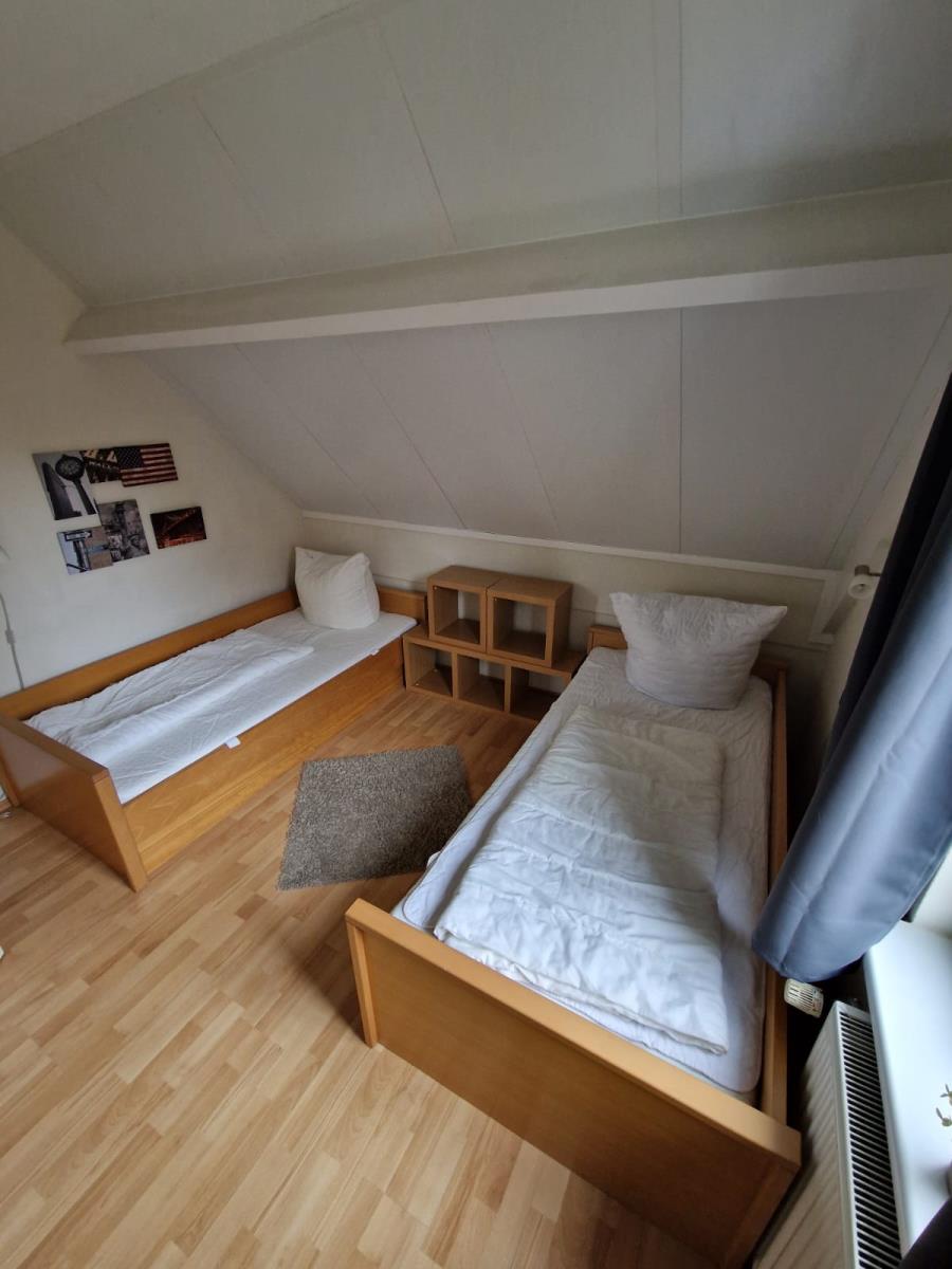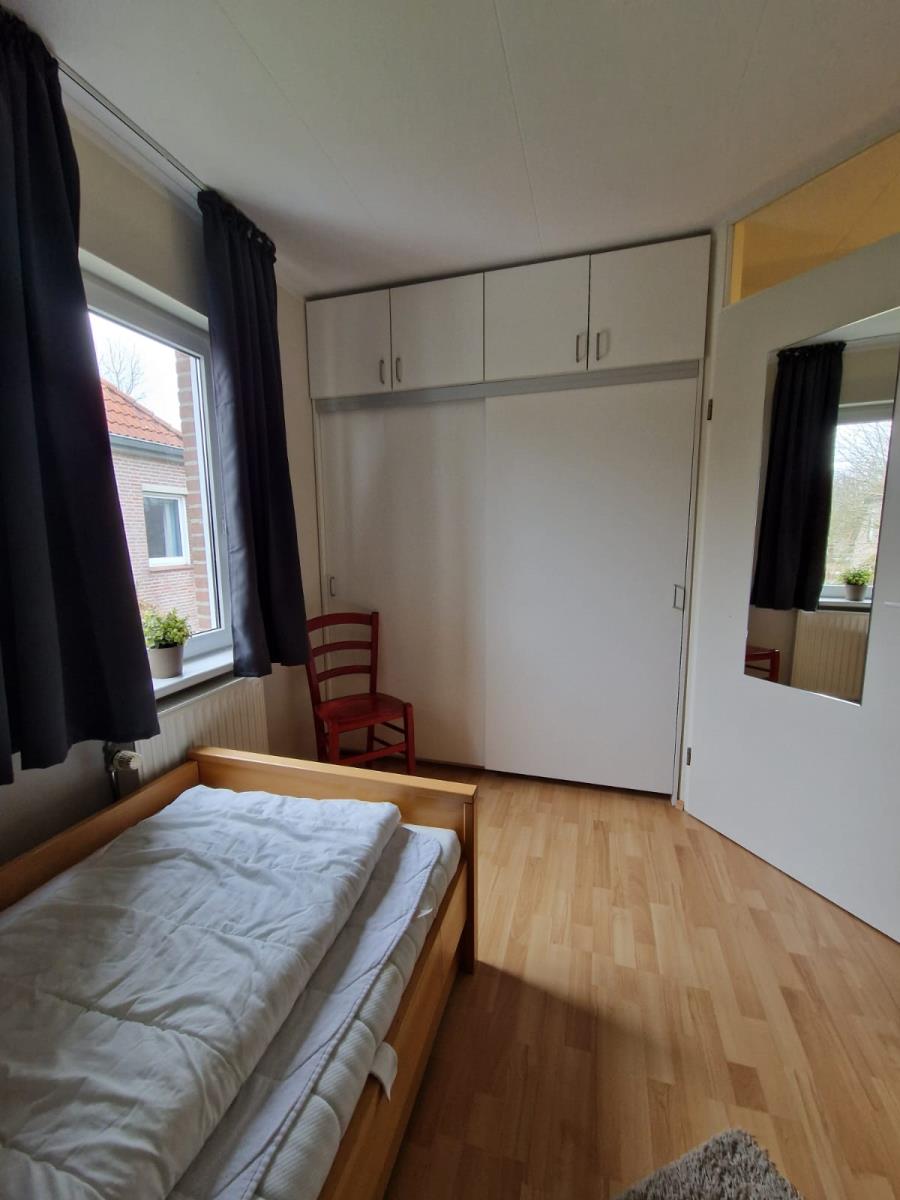Das Haus verfügt über zwei gemütliche Schlafzimmer. Ein Schlafzimmer ist mit einem Doppelbett (180 × 200 cm) ausgestattet, das zweite bietet zwei Einzelbetten (je 90 × 200 cm). Ergänzend steht im Wohnbereich ein Schlafsofa zur Verfügung.