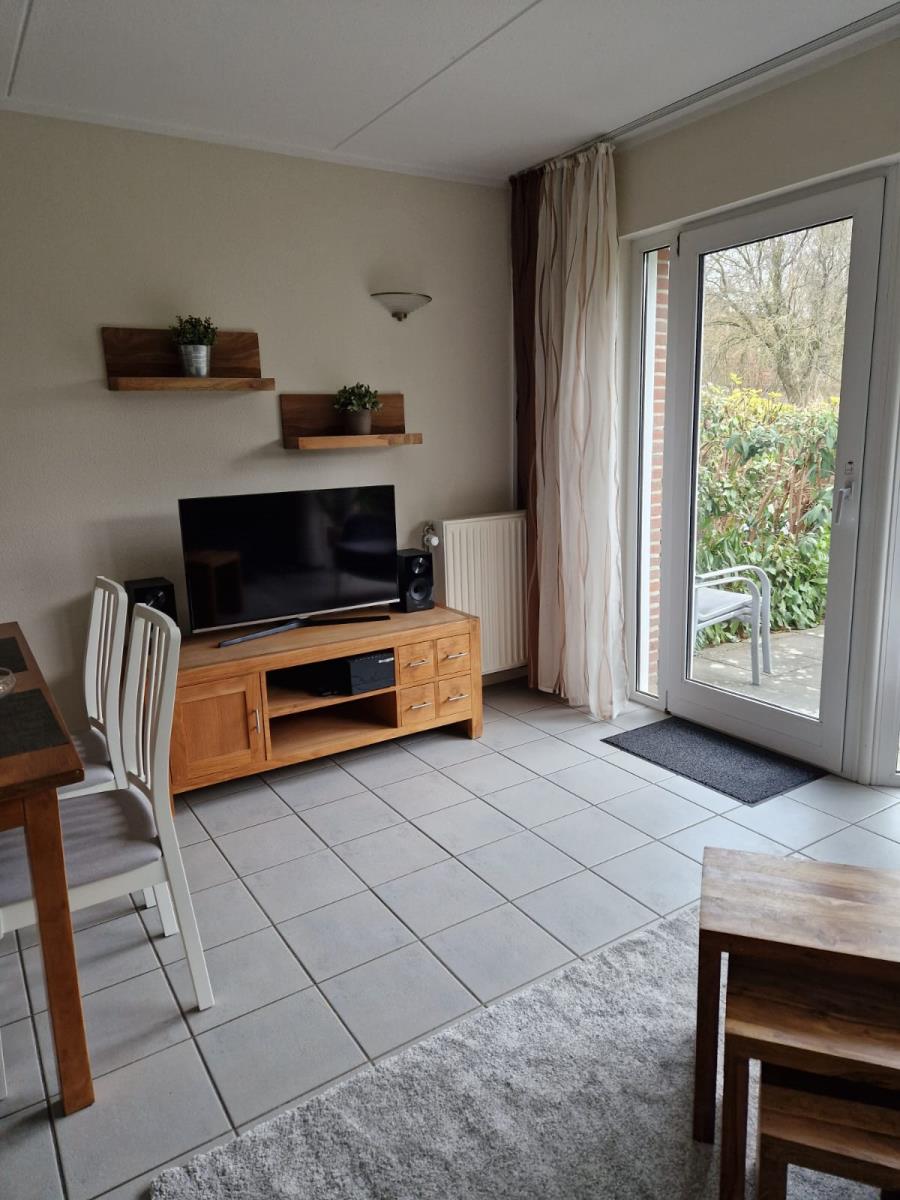 Der offen gestaltete Wohn- und Essbereich bildet das Herzstück des Hauses. Große Fenster sorgen für eine angenehme, lichtreiche Atmosphäre. Eine komfortable Sitzgruppe mit Sessel lädt zum Entspannen ein. Für Unterhaltung stehen Fernseher, Radio und CD-Player zur Verfügung.